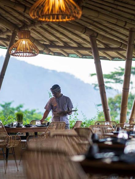 For an ultra-luxe dining experience, head to the open-air restaurant within Sidemen’s five-star resort, Wapa Di Ume. The restaurant looks out over panoramic views of the hillside, serenaded by the natural sounds of Sidemen’s Unda river. Quality cuisine is the name of the game here, with everything from Indonesian staples to western favourites and some very special signature dishes too.